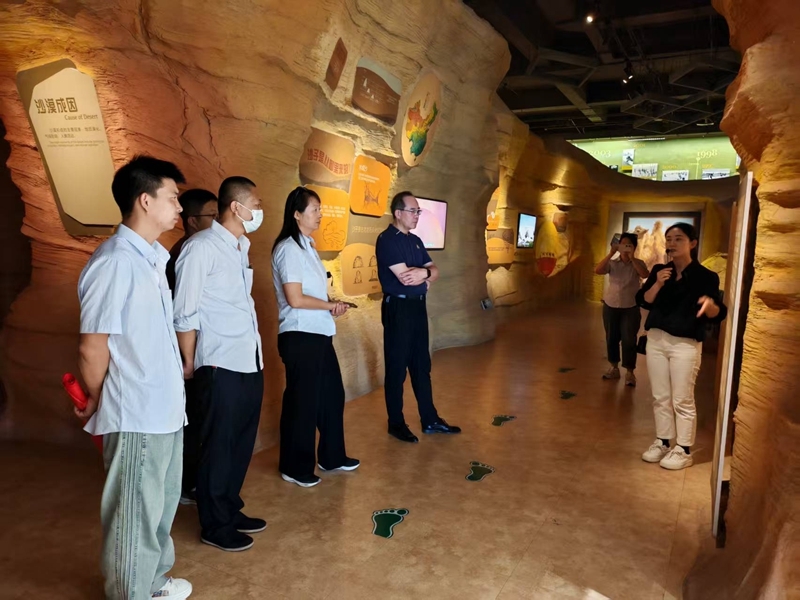 活动中,大家参观了全国防沙治沙展览馆,学习了沙漠特点、土地沙化危害,以及我国“三北”工程开展情况,并通过影像、图片了解了一代又一代白芨滩人探索治沙的过程与场景。在保护区宸喜园,聆听微课《一颗树的情怀》,与2008年时任中央政治局常委、中央书记处书记、国家副主席的习近平考察白芨滩所种枣树合影。活动最后,大家通过俯瞰保护区,进入园区改造营地,直观感受黄沙蜕变绿洲的奇迹。